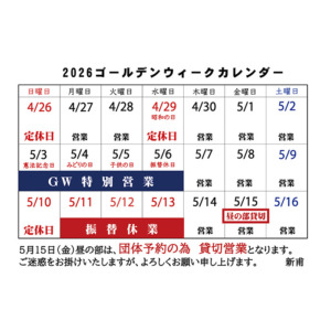 今年のゴールデンウイークも、ぜひご会食にお出かけくださいませ。