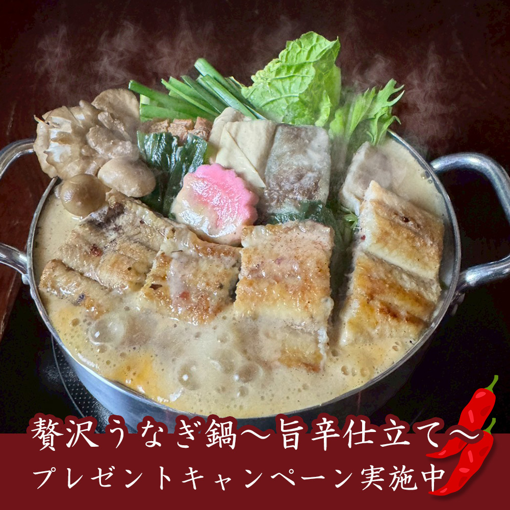 一口飲めばもうやみつき!の旨辛味。ぜひご賞味いただきたく、「贅沢うなぎ鍋~旨辛仕立て~」が当たるプレゼントキャンペーンを実施いたします。