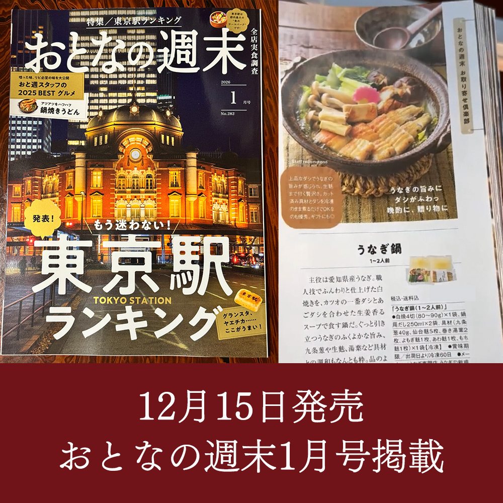 12月15日発売の「おとなの週末1月号」に当店の人気商品うなぎ鍋が掲載されました。